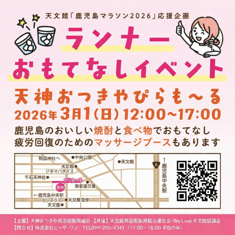 ホーム » お知らせ»お知らせ » 【天神おつきや商店街振興組合主催】「鹿児島マラソン2026おもてなし@ぴらも~る」が開催されます