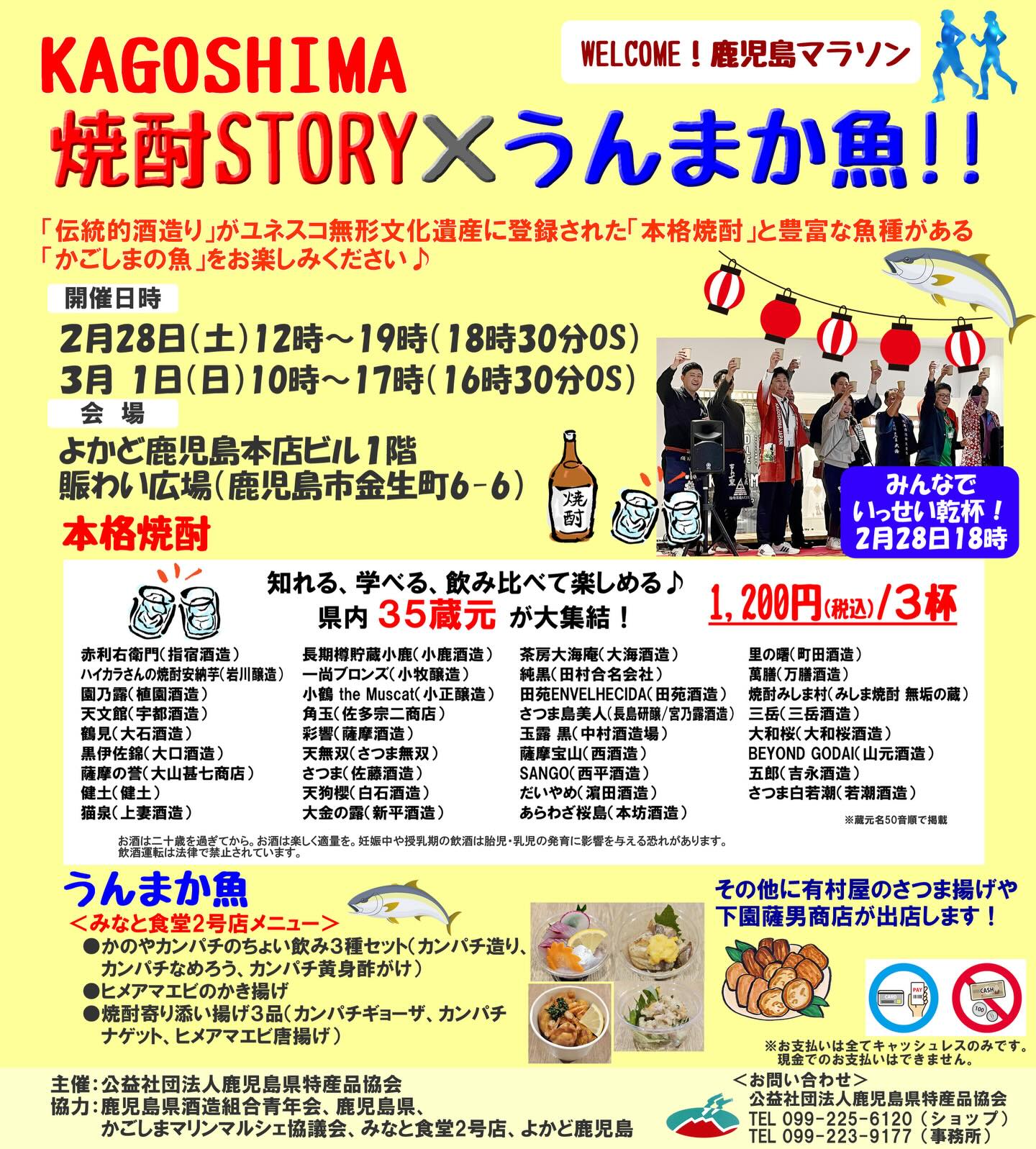 2月28日(土)~3月1日(日)によかど鹿児島本店ビル1Fで「KAGOSHIMA焼酎STORY×うんまか魚」が開催されます。